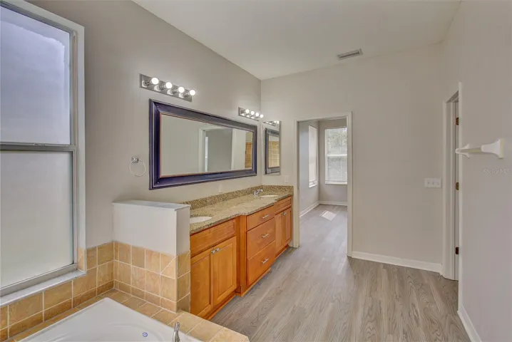 NEW ROOF! Located in Wilderness Lake Preserve, this home features a well-thought-out layout with plenty of space for comfortable living. The kitchen boasts 42-inch upper cabinets, granite countertops, and stainless steel appliances, flowing seamlessly into the bright living and dining areas. The primary suite on the main floor offers a walk-in closet, dual sinks, a separate shower, and a garden tub. Upstairs, you’ll find a loft, an additional bedroom, and a full bathroom, perfect for guests or added privacy. The outdoor patio overlooks well maintained landscaping, offering a peaceful retreat. The community provides access to a pool, park, playground, and tennis courts. Conveniently located, you’ll be just 5 minutes from Wilderness Lodge, 20 minutes from Tampa Premium Outlets, and 35 minutes from Downtown Tampa. Tampa International Airport is a 40-minute drive, and Clearwater Beach can be reached in an hour, making this home an excellent blend of comfort and convenience in a serene setting. Potential rate buydown options may be available. Inquire with listing agent for more information.