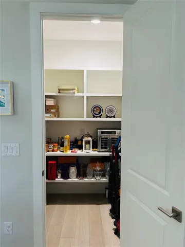 Quartz countertops, 42” soft-close shaker cabinets with extra storage, tile backsplash, under/over cabinet lighting, upgraded Samsung appliances, large island, and a walk-in pantry with custom shelving.