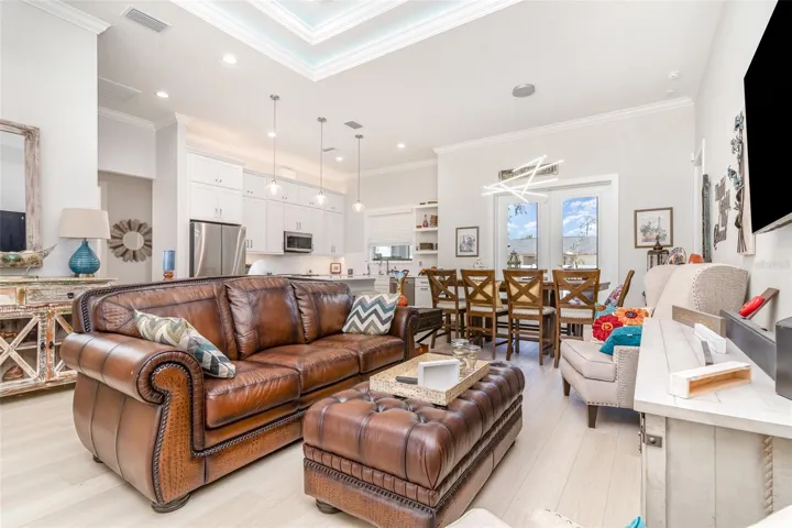 Modern 3-bedroom, 2-bath home with luxury finishes and an open floor plan. Features 12’ coffered ceilings, crown molding, modern lighting, and vinyl plank flooring throughout.