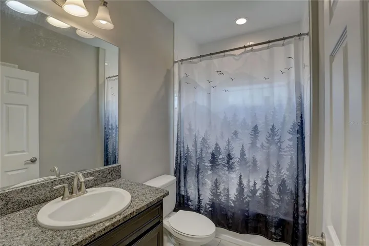 A guest bedroom and full bathroom on the main floor offer ideal accommodations for visitors or multigenerational living. Upstairs, you’ll find the luxurious primary suite with a generous walk-in closet and spa-inspired bath, complete with a soaking tub and walk-in shower finished with floor-to-ceiling tile.