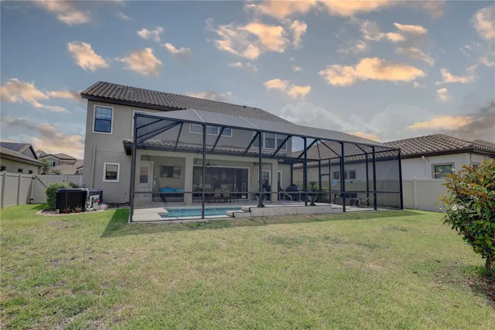 Enjoy true Florida living with a screened, heated saltwater pool, tile deck, and covered patio—all in a fully fenced backyard for added privacy. The outdoor surround sound system extends your entertainment space, perfect for poolside afternoons and weekend BBQs.