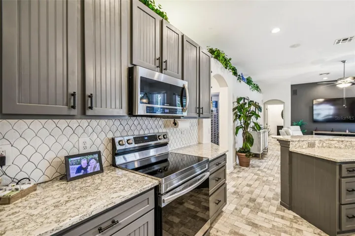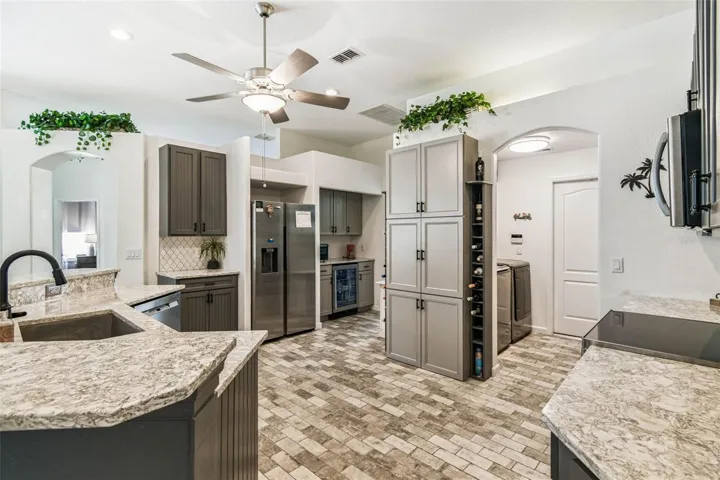 A fully remodeled kitchen featuring Cambria Quartz countertops, a spacious island with breakfast bar, and a butler’s pantry — perfect for entertaining or everyday living.