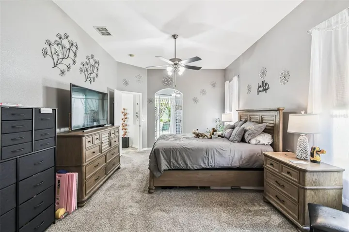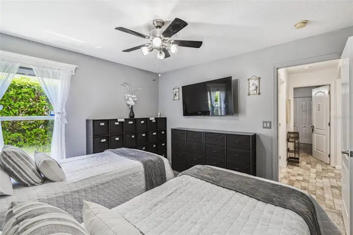 Hand-laid designer brick flooring, new bedroom carpeting, and a King-sized master suite with direct pool access.