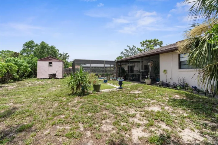 Enjoy the Florida lifestyle year-round with your private in-ground pool, child safety fence, screened lanai, and spacious backyard—perfect for entertaining, pets, or simply relaxing in your own outdoor retreat. The home is equipped with energy-efficient window screens and a heat release system to improve airflow and reduce cooling costs during warmer months. Additional highlights include R30 insulation, a new pool pump, and a large 10×12 storage shed ideal for lawn tools or hobbies. Major systems provide peace of mind with a roof (2016), A/C (2016), and newer water heater (2025).