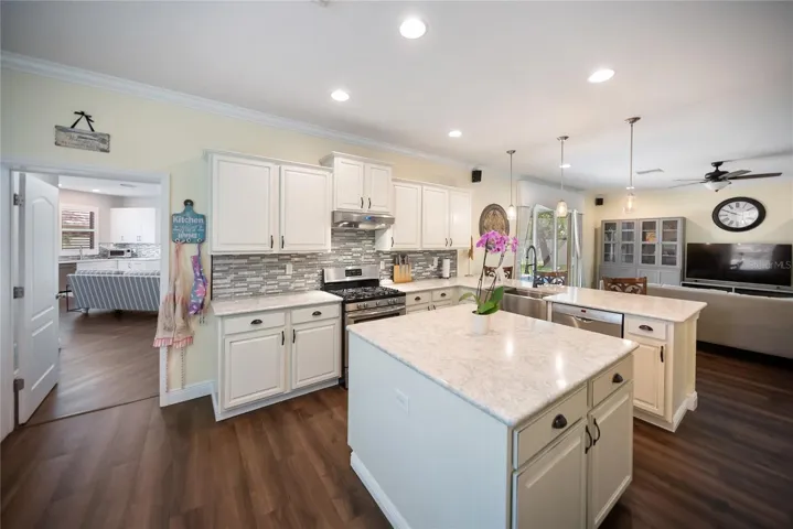 One-of-a Kind Multi-Generational Oasis in the Heart of Sarasota! Welcome to 5726 Aaron Ct, where luxury, space and versatility meet in this show-stopping 6 Bedroom, 5.5 Bathroom Pool and Spa home featuring an extraordinary 750 sqft addition. The attached addition includes its own bedroom, a full bathroom, living area, kitchenette, air conditioner, washer/dryer connection and private entry – ideal for multi-generational living, private guest quarters, or an income producing potential! Tucked away on a peaceful corner lot with very minimal HOA and no CDD, this upgraded retreat offers a thoughtfully designed layout with high ceilings, dual living areas and a seamless flow for entertaining. The chef’s kitchen features quartz countertops, stainless steel appliances, a gas range, custom cabinetry and a large center island. Additional highlights of the home include your very own English library, an oversized pavered driveway, a corner lot with a spacious backyard and brand-new carpets in the bedrooms. The addition includes a Generac generator ensuring you will always have power when needed. Step outside into your backyard paradise and you’ll find a sizeable heated, saltwater pool with spillover spa, within an expansive screened-in lanai and cedar planked covered ceiling offering warmth, charm and an elevated outdoor living experience. Whether you’re hosting gatherings or enjoying a quiet evening, the ambiance is truly unforgettable. Prime Sarasota location, you’re only minutes away from University Town Center (UTC) with world class shopping and dining; the arts and entertainment of Downtown Sarasota; I-75; Nathan Benderson Park and the soon to be open MOTE Marine Aquarium; as well as the unforgettable and world-renowned crystal clear water- beaches that the Sun Coast is famous for. This is more than a home, it is a Must See and an opportunity to live, host and invest in one of Sarasota’s most versatile properties on the market today! Schedule your private tour before it’s too late!