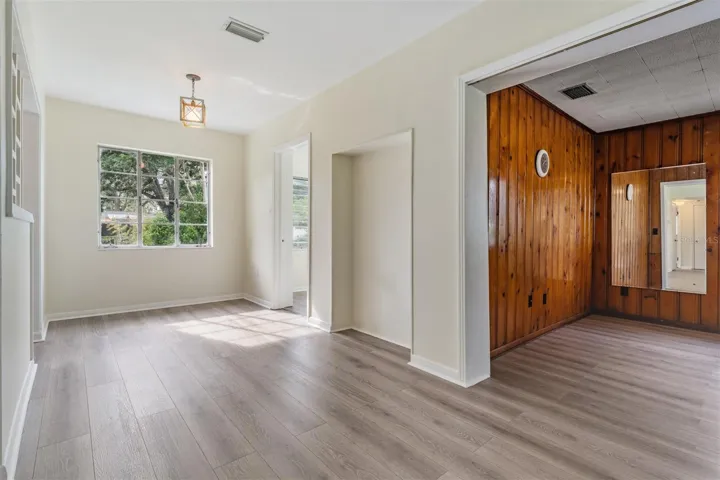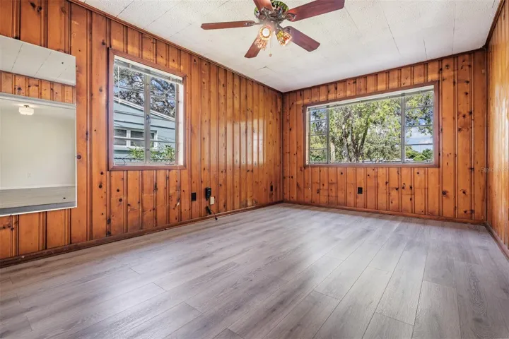 Under contract-accepting backup offers. Charming Mid-Century Home with Golf Course Views! Nestled among majestic oak trees in the highly desirable Golfland of Tampa’s North Side Country Club area, this 2 bedroom, 1 bath mid-century charmer sits on an oversized 73×130 lot (.22 acre), directly across from Babe Zaharias Golf Course—offering gorgeous views of the 4th green from multiple rooms. Inside you’ll find an L shaped living and dining area, plus a cozy tongue-and-groove knotty pine family room that could easily be converted into a third bedroom. Light and bright Florida Room/Sunroom, just off the dining area provides an ideal space for a home office, gym, or playroom and flows into the indoor laundry. The kitchen overlooks the expansive, fenced backyard—offering endless possibilities for an addition, pool, or vegetable garden…you choose. A rear corner patio area is ready for grilling and entertaining. The bathroom features a neutral color palette, new vanity, and ample storage with linen and hall closets nearby. Bedrooms are light and airy with ceiling fans, and additional storage can be found in the attic, laundry, and mini golf cart size garage with a tandem car port. Recent updates include: Fresh interior paint, New luxury vinyl plank flooring throughout, except kitchen, bath and laundry room. Updated electrical and plumbing. A/C 2016 & H2O heater 2020. Termite warranty Additional highlights include a long tandem covered carport and golf cart size garage for extra storage. With no HOA, this home offers peace of mind and convenience—just minutes to I-275, Carrollwood, USF, Downtown Tampa, and more. Don’t miss your chance to own this Charmer with stunning views of the Babe Zaharias Golf course!