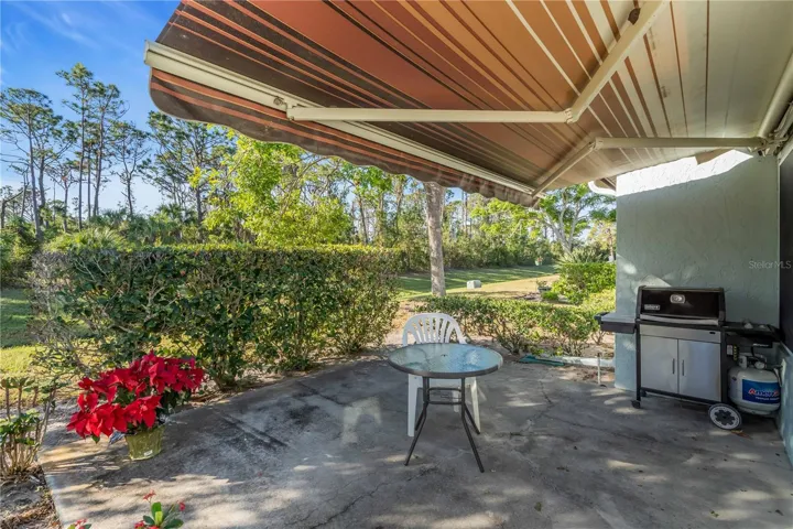 Under contract-accepting backup offers. Welcome to this lovingly maintained and gently lived in perfectly sized villa, located in the relaxing 55+ community.. offered TURNKEY! This exceptional villa in the active and sought out retirement neighborhood of Foxwood was spared any hurricane damage, and showcases numerous upgrades and desirable features. NEW ROOF in 2023 and NEWLY INSTALLED IMPACT WINDOWS. Upon entry, you’ll notice the updated flooring that extends seamlessly into the dining room and kitchen. The kitchen offers stone countertops, STAINLESS STEEL APPLIANCES, premium KRAFTMAID cabinetry, tiled backsplash, and spacious closet pantry for ample storage. The spacious primary bedroom features an ensuite bathroom with a STONE COUNTERTOP VANITY and a walk-in closet. Guest bathroom has been thoughtfully updated and features a STONE COUNTERTOP VANITY. Guest bedroom is spacious and offers a built-in closet. A Flexible bonus room offers possibilities, including easy access to the private rear patio. The rear patio retreat features a POWERED RETRACTABLE AWNING—perfect for relaxed evenings or hosting a barbecue. As part of the Foxwood community, enjoy access to amenities such as a heated pool and spa, pickleball courts, bocce, tennis, shuffleboard, and various club activities. Condo fees cover numerous essentials, including cable, internet, water for irrigation, lawn maintenance, exterior insurance, roof, and much more! Foxwood is ideally located near Englewood’s stunning beaches, shopping, dining, golf courses, and recreational options, offering a balanced lifestyle of adventure and relaxation. Don’t miss the chance to make this charming villa your next Florida home.