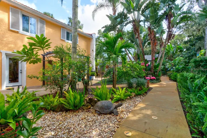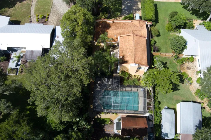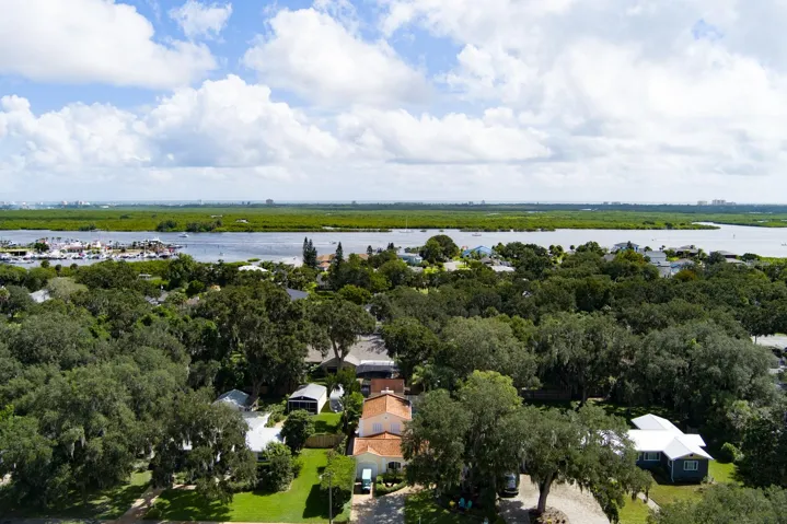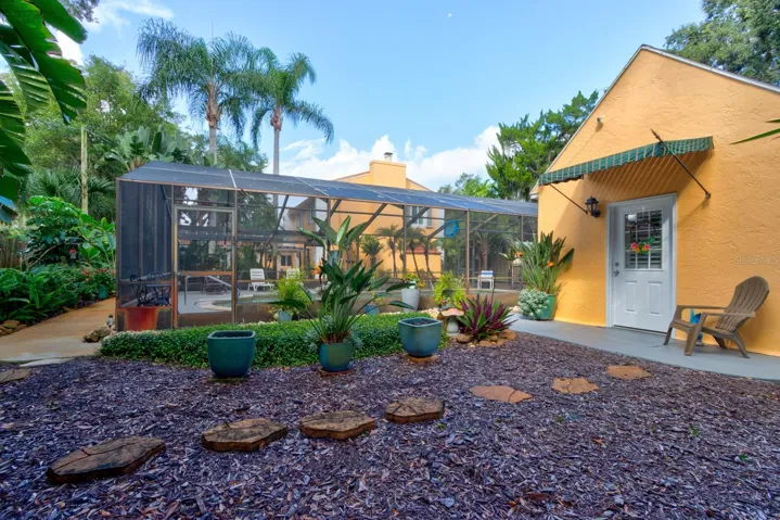 Welcome Home to 1413 Live Oak Street, New Smyrna Beach, a mid-century coastal masterpiece between US-1 and the river, golf-cart close to Canal Street and Flagler Avenue shopping boutiques and eateries, art walks, farmers market, and minutes to the beach. Originally the residence of famed photographer Jack Mitchell, the property retains his studio; now a detached poolside guest cottage with a full bath set behind lush private gardens and a screened sparkling 35’×20′ saltwater pool with new pebbletec pool deck, new pump, and new saltwater generator. For peace of mind: the home is located in coveted Flood Zone X with no history of flooding. The sellers are offering a home warranty for added confidence. Just a short stroll brings you to Yacht Club Island and the river, perfect for walks, sunrises, or launching your coastal adventures. Inside, thoughtful upgrades and remodeling projects (1995) honor the 1952 architecture while delivering today’s comforts~ Top-of-the-line kitchen with quartz countertops, glass backsplash, 42″ inch shaker style cabinets with display cases, dovetail soft-close drawers, and premium top-of-the-line stainless appliances. Step into an inviting large family room with wood-burning fireplace, perfect for gatherings. The primary suite is on the main floor with cozy powder area and an elegant remodeled primary en suite bathroom. Upstairs offers two additional bedrooms and a guest bathroom with timeless wood floors and tile in the restroom. Plantation shutters run throughout both levels of the main home as well as the guest house, complemented by built-in baseboards that preserve the home’s character and quality of construction. Tile and luxury vinyl plank flooring span the first floor, and a large laundry and storage room completes your checklist. The guest house/pool cottage is fully tiled with porcelain floors, a river-rock bathroom floor, and ADA-compliant features including the bathroom, entry, and sidewalk approach. It also includes a partial kitchenette, making it perfect for extended stays or multi-generational living. Dual A/C systems (recently serviced and tuned for prime comfort), plumbing updates, hurricane-impact windows, storm shutters on most windows, seamless leaf guard gutters, and a 100-year concrete tile roof deliver true turnkey confidence. Irrigation in the front, back, and landscaped beds, along with a pergola and multiple outdoor seating areas, create a hidden oasis that feels like a private resort. This property also offers potential for expanded rental income; a bed-and-breakfast license or shorter-term rental opportunities could be explored, giving the home flexible income possibilities. This property has been chosen to be featured on the 2026 Coalition Home Tour, a testament to its architectural significance and exquisite presentation. All this is the authentic historic-district character that new builds try to imitate, but can’t duplicate, wrapped in impeccable, move-in-ready condition. Schedule a viewing today!
