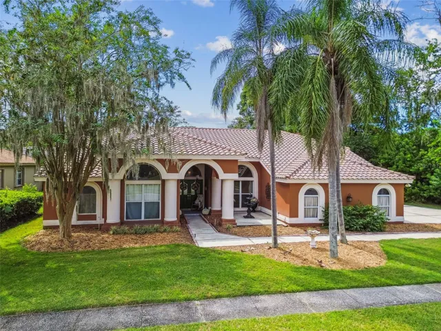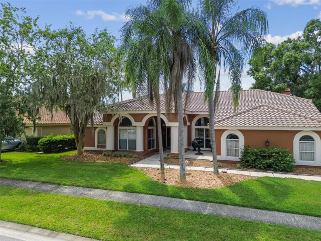 Stunning 4BR/2.5BA pool home on an oversized lot in the gated East Lake Woodlands – Aberdeen community. This airy single-story residence offers over 2,800 sq ft with soaring ceilings, open floorplan, and abundant natural light. The spacious primary suite features private access to the patio, and in the bathroom you will find a walk-in closet, dual vanities, beautiful clawfoot tub, and separate shower. The home also boasts formal living and dining areas, a family room with fireplace, and a bright open kitchen. A large laundry room/wash room combo with exterior access and 3-car garage provide added convenience. Outdoors, relax or entertain with a screen-enclosed pool, covered patio, and mature landscaped yard. Enjoy community amenities including golf, tennis, fitness center, pool, and sidewalks—all ideally located near shopping, dining, top schools, and the Gulf beaches.