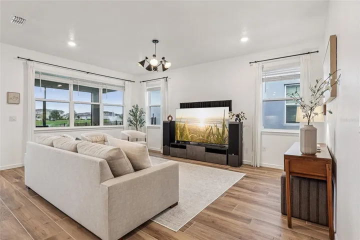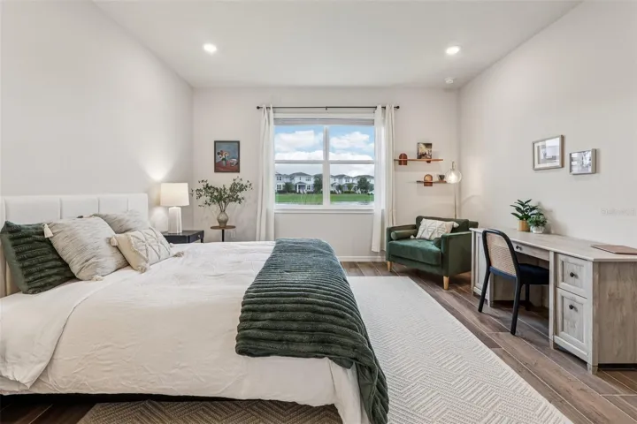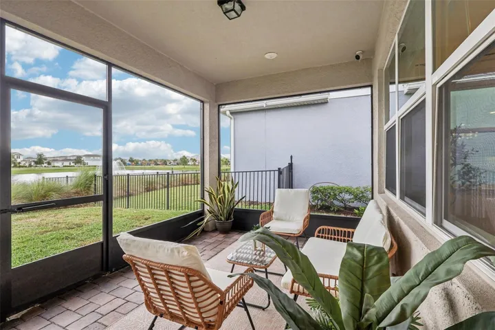 WELCOME to the pinnacle of single story living in the SOUGHT AFTER, ISLAND-STYLE, gated community – Isles of Lake Nona! Perfectly positioned on a **CUL-DE-SAC** street with tranquil **WATER VIEWS** and no rear neighbors, this meticulously UPGRADED home is as impressive in quality as it is in lifestyle. Step inside to a light and bright **OPEN CONCEPT** layout adorned with OVERSIZED WOOD LOOK TILE flooring, a fresh modern take on neutral color palette, and designer lighting and fixtures that create an undeniable stylish ambiance throughout. The chef’s dream kitchen is a true showstopper – featuring sleek QUARTZ COUNTERTOPS, gas cooktop, under cabinet lighting, built-in wall oven, and TOP OF THE LINE APPLIANCES, including a Samsung Bespoke four door French door refrigerator with Family Hub. The striking cabinetry and finishes are both elegant and timeless. You will enjoy indoor/outdoor living with a SCREENED LANAI overlooking the peaceful pond, and a pre-plumbed gas line ready for your dream Summer kitchen or grill setup. The HOA even takes care of the lawn care and landscaping making it easy to relax on the weekends and maintain CURB APPEAL year-round. This energy efficient **SMART HOME** comes fully loaded with a whole home **SOLAR SYSTEM**, providing annual energy credits even while powering your A/C and EV CHARGING daily. The garage is where you will find the dedicated EV charging station, and the TANKLESS WATER HEATER ensures endless hot water with maximum efficiency. Built for the future, this home includes: Surround sound system with 5 ceiling speakers | CAT6 ethernet and telecom ports in multiple locations | TV media wall port in the family room w/ interconnect in-wall wire chase tube | Extra wireless router pre-wiring in kitchen and garage | Smart home features for added convenience | Maytag washer/dryer with WiFi capability. The concrete block construction, HURRICANE RATED ROOF, soundproof and storm-resistant windows, and wired ADT alarm system provide top-tier safety and durability. All this is located just one block from the **RESORT STYLE COMMUNITY POOL & AMENITIES**, and only minutes to Laureate Park, Medical City, **TOP-RATED SCHOOLS**, restaurants, and shopping – yet you are tucked away in a serene, quiet setting. Community perks include: Gated access, front yard maintenance, cable/internet, fitness center, tennis and basketball courts, pickleball, splash pad, playgrounds, and miles of peaceful sidewalks. **PREMIUM LOT. HIGH-END UPGRADES. ENERGY SMART LIVING** – this is more than a home – it is a lifestyle curated for comfort, health, luxury, and location. Call today to ask about a lender provided RATE BUY-DOWN CREDIT on this home, set up your tour and let us say WELCOME HOME!