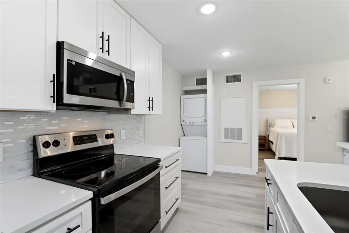 Completely new in 2023 in gated Regency Park and lovingly cared for. This enclave offers a luxury and tranquility with its numerous upgrades and quality modern finishings. This is the only building in the community that has been rebuilt from the ground up. Only this building can boast new everything meaning: new roof, new plumbing, new electrical, new HVAC, new water heater, new cabinets, new countertops, new fixtures, new windows, new doors, etc. Some of the luxurious finishings include: quartz counters, stainless steel appliances, luxury vinyl wood planks, shaker cabinets with soft close, closet cabinetry, modern designer fixtures, wainscoting, and more. There’s also a washer and dryer included that’s missing from many of the units in the community. Situated on the ground floor for easy access, leading to a beautiful patio where you can indulge in gardening or simply relax. Enjoy the perks of community living with matured trees, a clubhouse with a fitness center and pool, playgrounds, tennis courts, laundry facilities electric charging station for EV’s and self-cleaning stations for cars. Nestled next to Greenwood Lake, enjoy water access and a fishing pier, adding a touch of nature to everyday life. Located in the quaint town of Lake Mary, known for its great shopping and numerous quaint eateries… this condo offers the perfect blend of luxury, convenience, and community living. It offers easy access to vibrant downtown Orlando and picturesque beaches via I4 and 417 highways. Just minutes from I4 and SR 417, be in Downtown Orlando in 25 minutes, Daytona & New Smyrna Beach and Downtown Disney, SeaWorld, & Universal Studios in less than an hour! Experience the perfect blend of modern luxury and natural beauty. This is an exceptional opportunity to own a piece of elegance and comfort of a brand-new condo in a gorgeous community located within a short drive to nearly everything. You’re home!