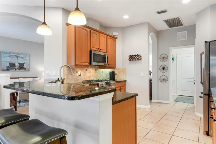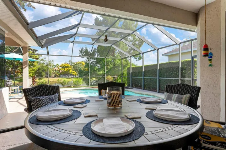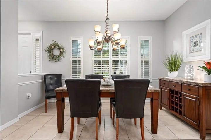 Inside, you’ll find plantation shutters in most rooms, a new roof added in 2024, and a spacious great room that opens to a covered lanai—perfect for entertaining or simply relaxing as Florida breezes drift in. The large kitchen features rich wood cabinets, gleaming granite countertops, and plenty of room to cook and gather. Enjoy casual meals in the breakfast nook or host special occasions in the elegant formal dining room.