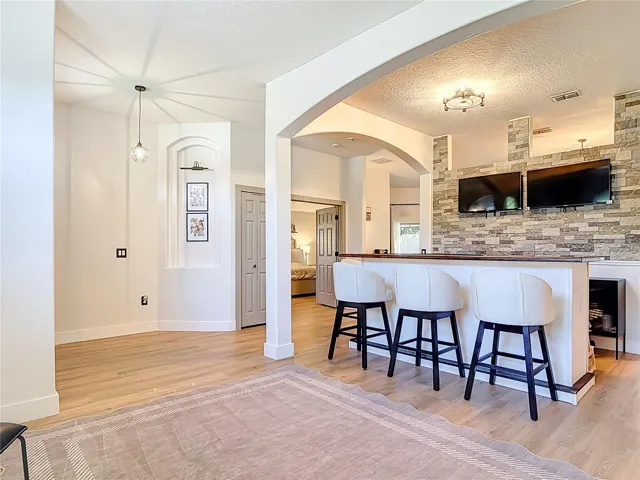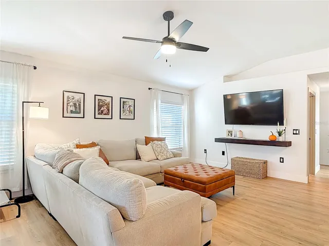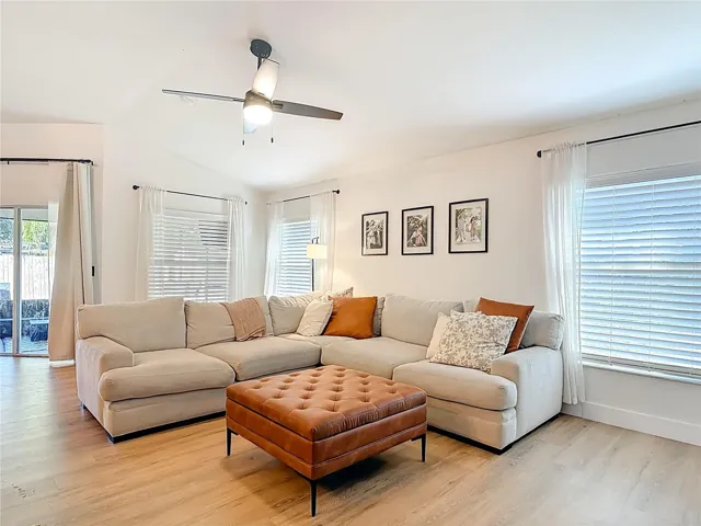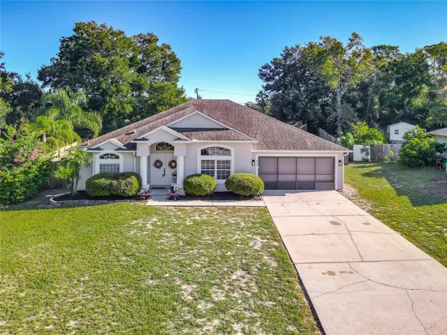You Will Love This Spacious 3-Bed, 2-Bath Home On A Large .32-Acre Fenced Lot In A Quiet Neighborhood. Step Through The Double-Door Entry Into A Bright, Open Layout Featuring Cathedral Ceilings And Large Windows. Formal Living Room Has Been Converted To A Great Location To Watch The Big Game With It’s Beautiful Custom Bar Area With Stone Accent Wall And Wood Countertop ,And Features Dual TVs So You Can Watch Two Games At One Time. The Home’s Layout Creates A Warm And Inviting Space For Family And Friends To Gather. The Kitchen Offers Ample Space For Cooking And Gathering, With A Pantry, Breakfast Bar, And A Breakfast Nook That Opens To A Screened Lanai And Huge Backyard — Perfect For Entertaining. The Split Floor Plan Includes An Oversized Primary Suite With Sliders To The Lanai, Two Walk-In Closets, And A Spacious En-Suite Bath With Soaking Tub, Separate Shower, And Double Vanity. Two Additional Bedrooms Also Feature Walk-In Closets And Share A Full Guest Bath. You’ll Also Love The Inside Laundry/Mudroom Off The 2-Car Garage. New LVP Flooring And Moulding Throughout. Newer Hot Water Heater. Newer Kitchen Appliances. Newer Roof (2017) And A/C (2016). And This Home Is In A Prime Location Near SR 415, I-4, Shopping, And Schools — Just 30 Minutes From The Beach Or Orlando — This Home Is A Must-See! Call Today To Schedule A Showing!