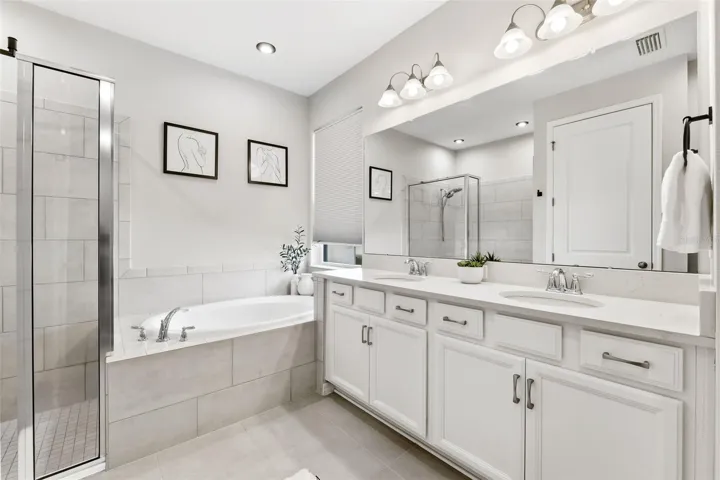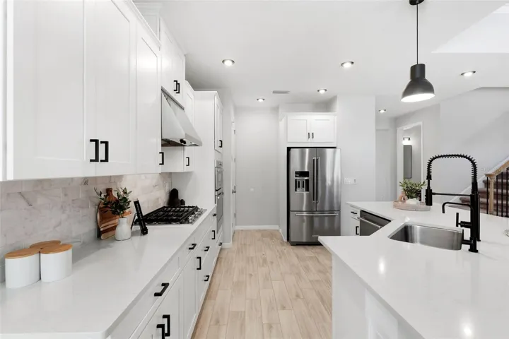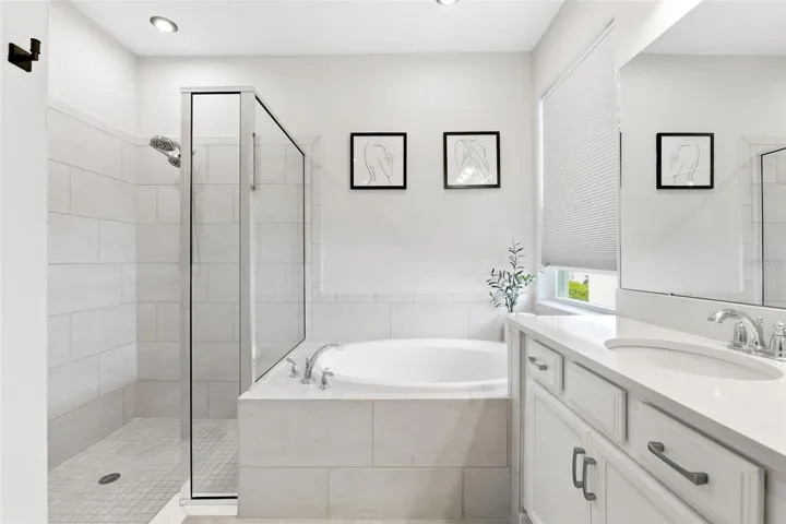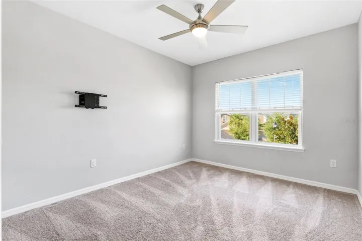 Other stand out features of this home include: Gulfstream salt water pool with two water features, upgraded shellock pavers, upgraded blue surf pebbletec, and pre-installed anchors for cage/enclosure, pre-plumbed water and gas lines for outdoor kitchen/sink, Aluminum fence surrounding backyard with three (3) gates and pet barrier feature, exterior rain gutters, gorilla built in basketball hoop, a sealed papered driveway, epoxied garage floor, overhead garage storage racks, water softener, reverse osmosis at the kitchen sink, upgraded marble backsplash in the kitchen, Custom built-ins for both closets in the primary bedroom, Upgraded black iron spindles on the staircase and on second-floor railings overlooking the great room, and so much more!